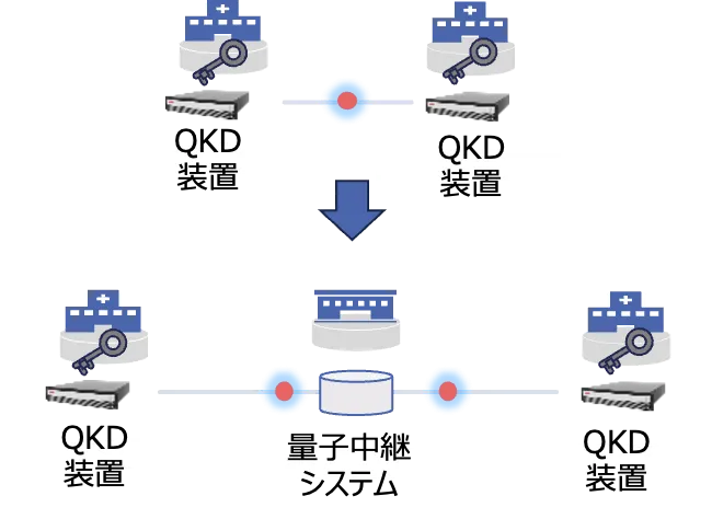 本共同研究では、量子中継システムとQKDを組み合わせることにより、その次世代技術の実現可能性を探ります。量子中継は、量子状態を劣化させることなく長距離にわたって伝送する重要な技術であり、将来の量子ネットワークの基礎を形成します。LQUOMが量子中継システムの設計を主に担当し、東芝がQKD方式の検討を行うことで、最適な技術統合を目指します。
