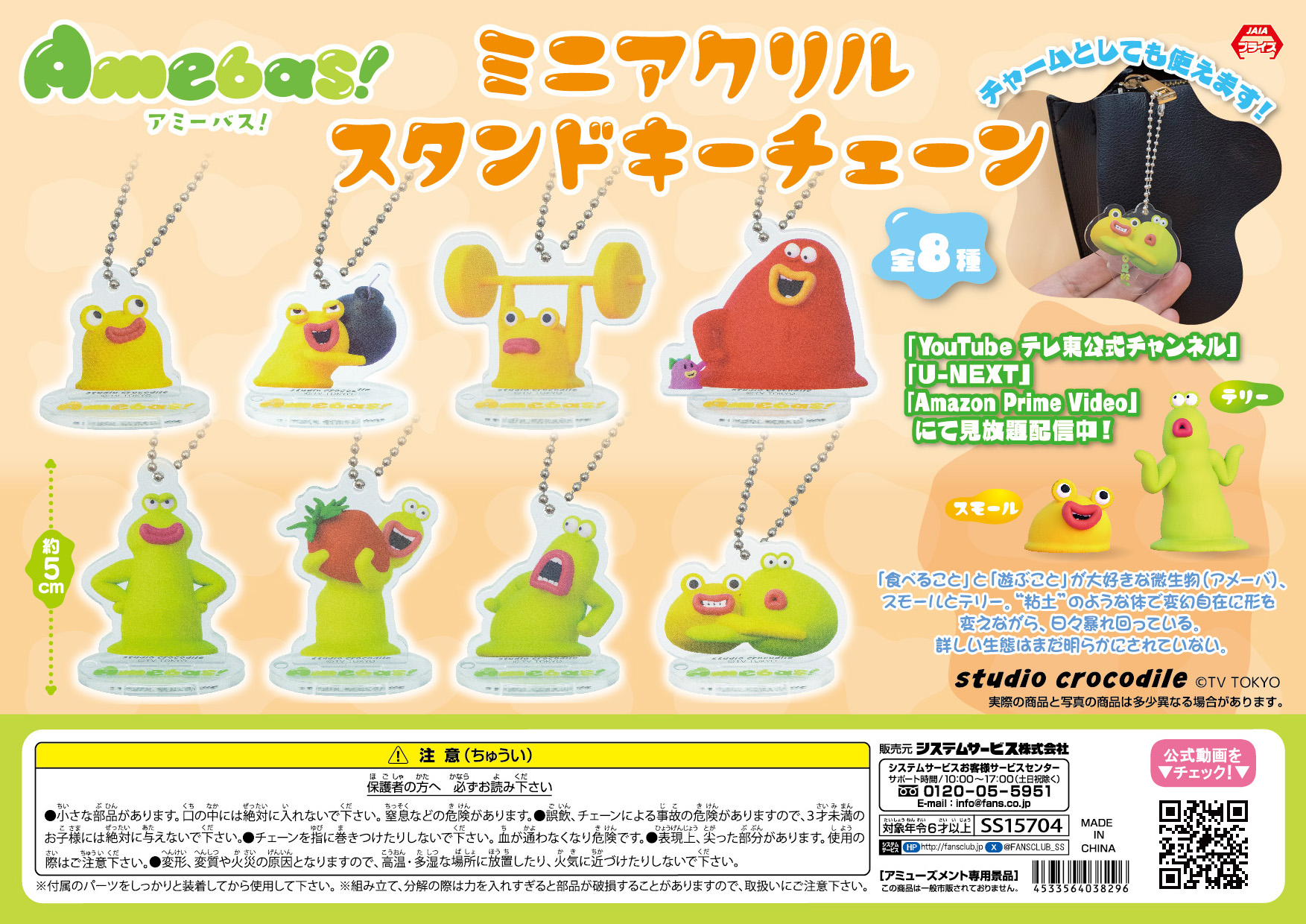 次に、待望の「Amebas!ミニアクリルスタンドキーチェーン」です。こちらは約5cmのチャームとしても使用できる多機能なキーチェーンで、全8種が揃います。登場時期は2025年1月の第2週から予定されており、詳しくは