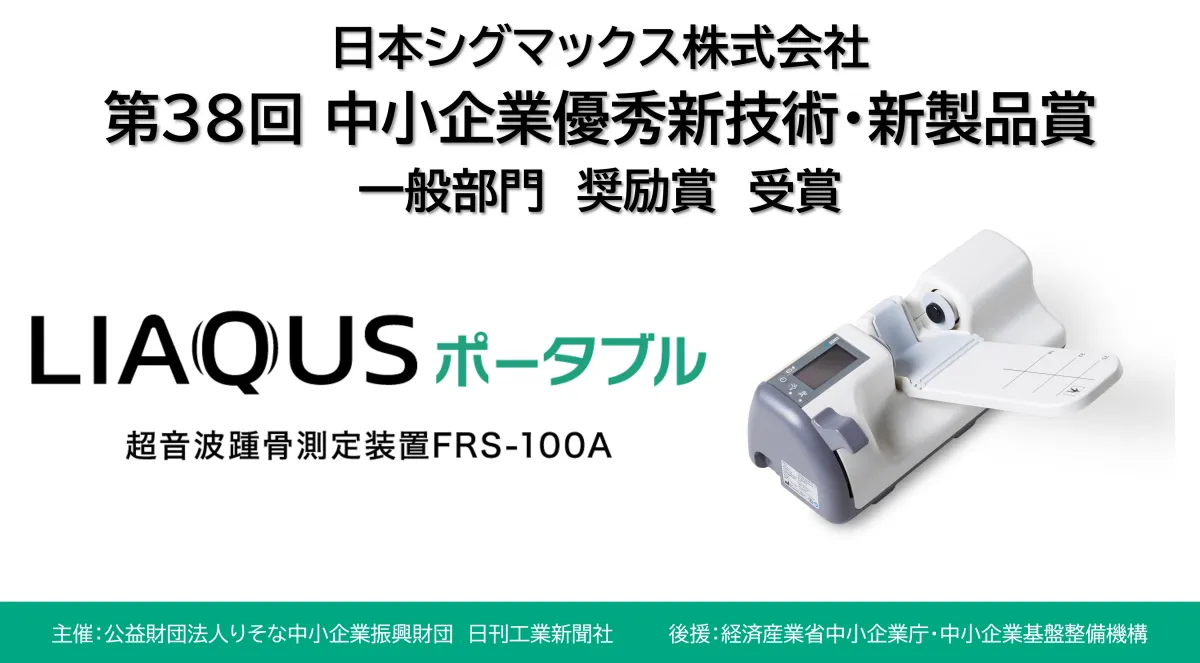 日本シグマックス株式会社が開発した超音波骨密度測定装置「LIAQUSポータブル」が、2024年に開催された第38回中小企業優秀新技術・新製品賞において奨励賞を受賞しました。本賞は、中小企業の優れた技術や新製品を評価するもので、公益財団法人りそな中小企業振興財団と日刊工業新聞社が主催しています。