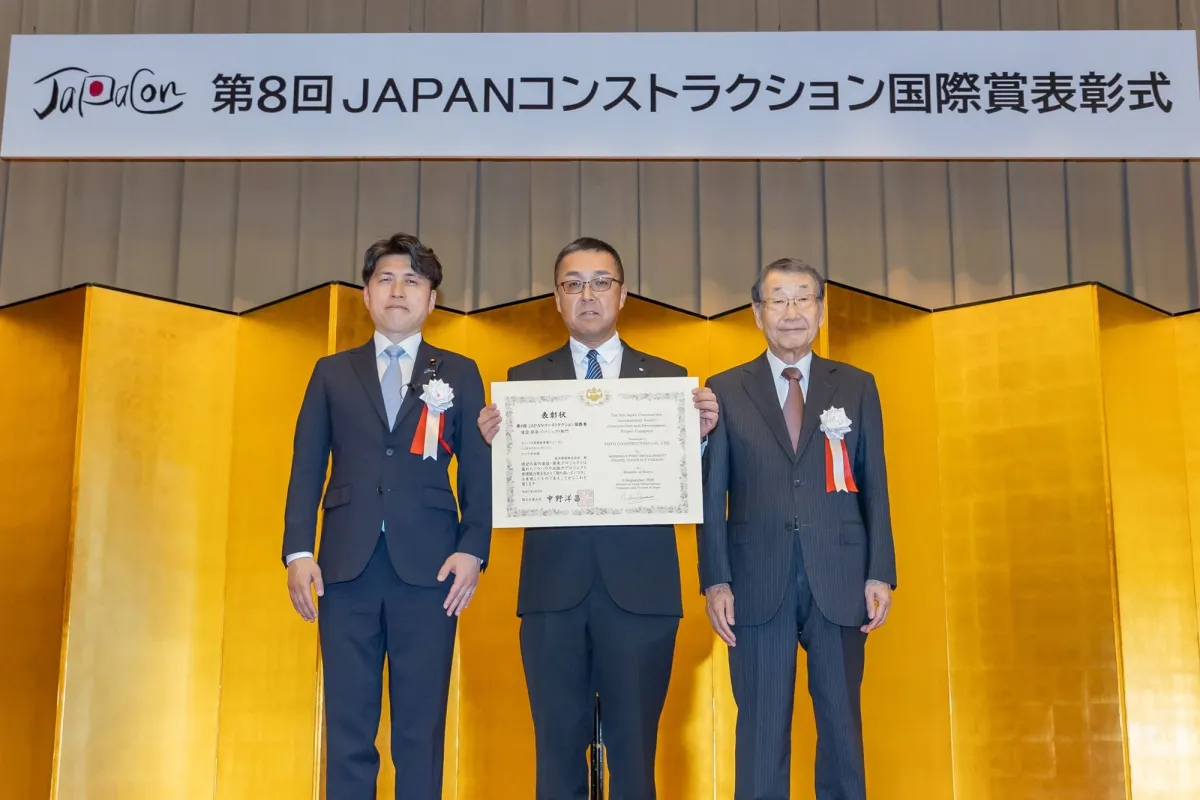 この「JAPANコンストラクション国際賞」とは、日本企業が海外で取り組んだ質の高いインフラプロジェクトに対する評価制度であり、人材育成や技術移転の面でも国際社会に貢献した企業が対象です。特に、設計や施工、不動産開発における優れた技術力やノウハウを発揮した事業が評価されます。今回は、東洋建設の取り組みが高く評価されたことになります。