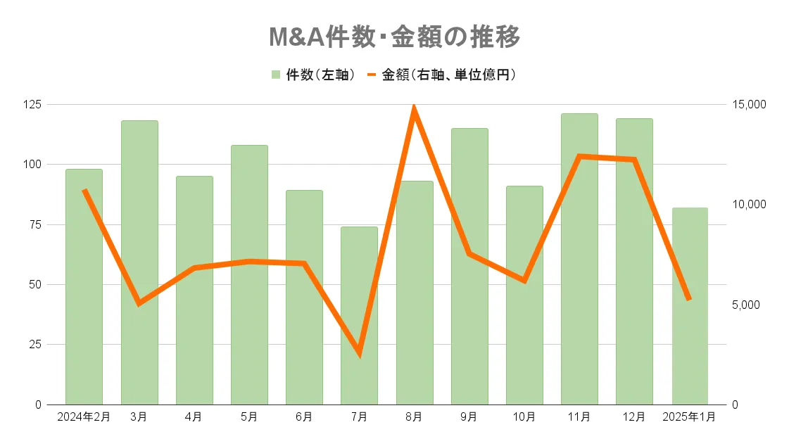 このように、1月のM&A市場は大企業の動きが目立ちましたが、全体としては、成長を目指した投資の意欲が鈍化していることも示唆しています。今後の動向には引き続き注目が必要です。