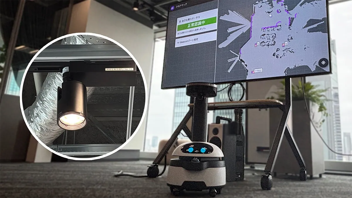 このプロジェクトは、パナソニックの照明設備とugoの自走式ロボットの連携に焦点を当てています。現在、多くのサービスロボットは、自身で位置情報を管理しなければなりません。しかし、異常停止などのトラブルが発生した際には、手動での操作が必要となってしまいます。これを克服するために、照明器具に取り付けられたビーコンが活用され、ロボットが効率よく単独稼働できるシステムを構築するのです。