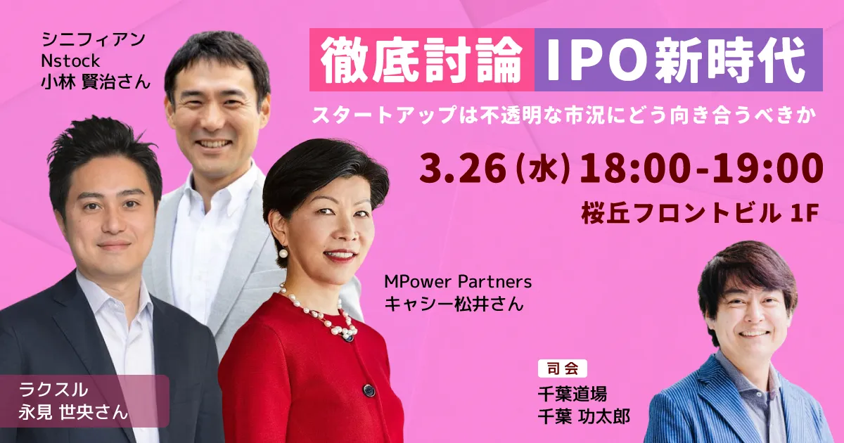 - - 1F「Catch the Star Floor」 では、シニフィアンの小林氏、ラクスルの永見氏、キャシー松井氏らが集い、急変するIPO市場におけるアーリー・ミドルステージの経営戦略を議論します。
