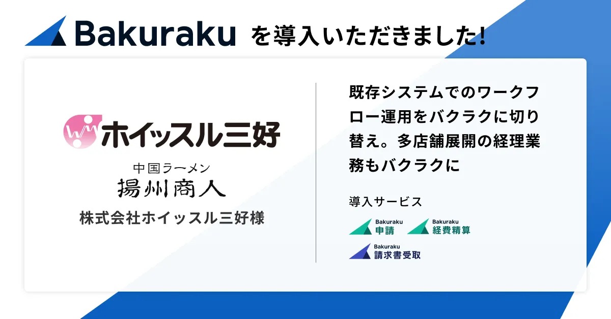 関東に37店舗を展開する「中国ラーメン揚州商人」を運営する株式会社ホイッスル三好が、株式会社LayerXの提供する業務効率化クラウドサービス「バクラク」を導入しました。この取り組みは、昔ながらの紙媒体の管理方法から脱却し、デジタル化を通じて業務効率を大幅に向上させることを目的としています。