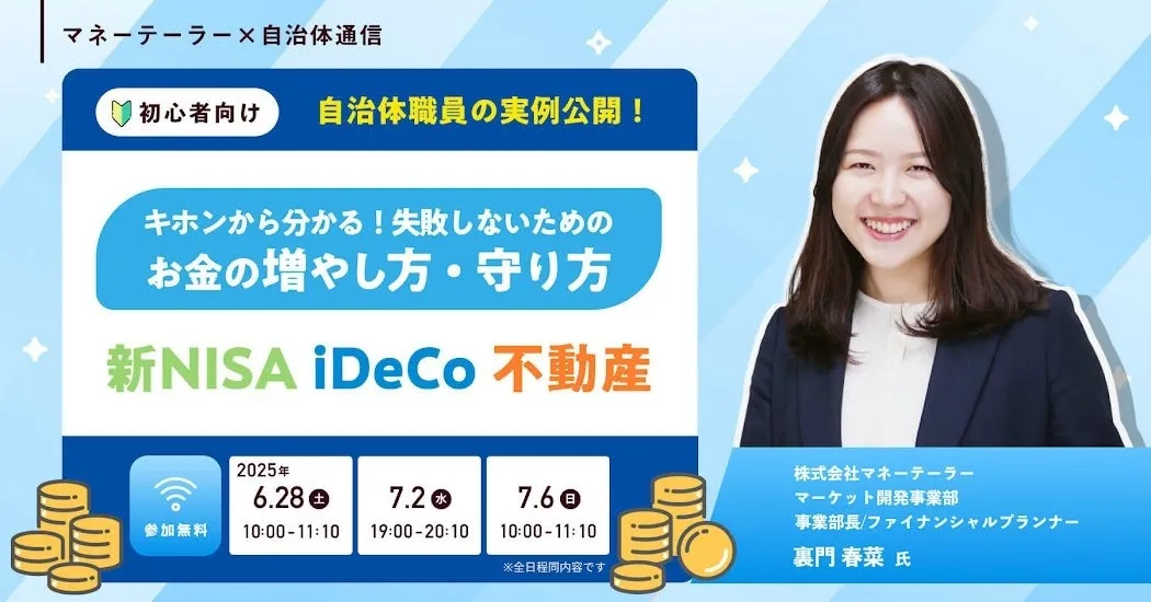 2025年6月28日、7月2日、6日の3日にわたって、株式会社マネーテーラー主催のセミナーが開催されます。主な内容は、自治体職員や議員の方々を対象にした「失敗しないためのお金の増やし方・守り方」についてです。最近、老後の資金や将来の財政的な不安を抱えている方が増えていますが、そんな方に向けた基礎から学べるセミナーです。
