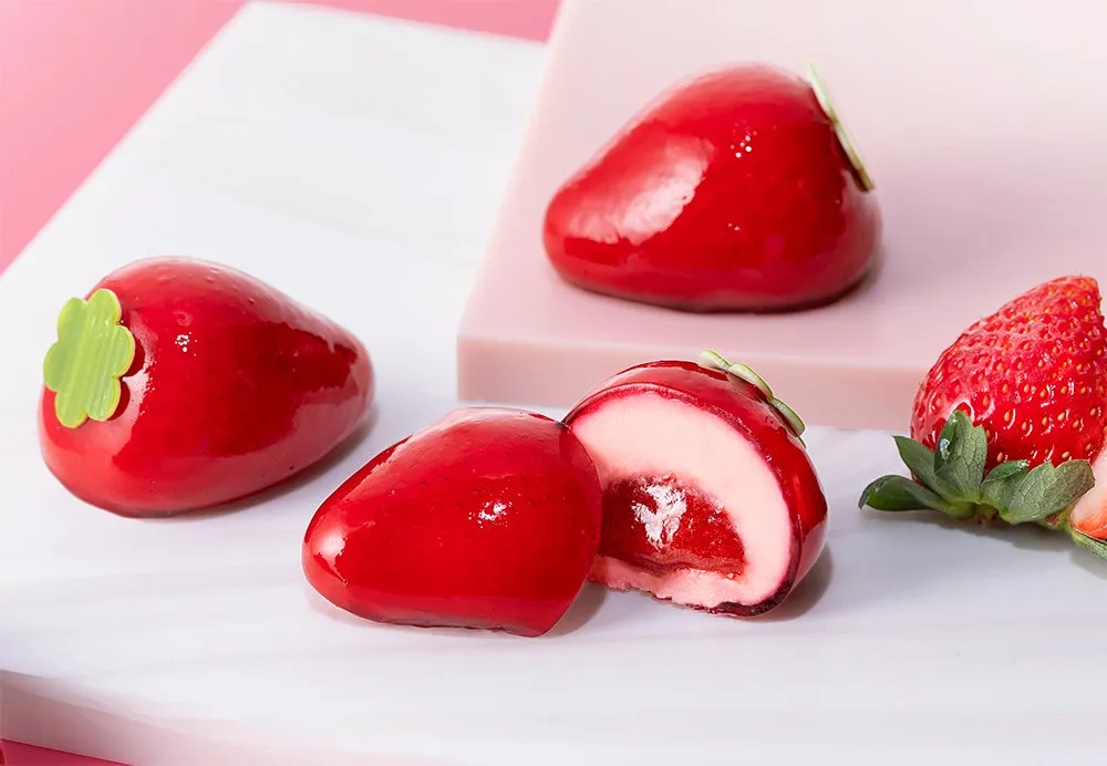 『ストロベリーシーズン』は、食べやすいひとくちサイズのケーキとして登場。口に含むと、極上のなめらかな食感を楽しむことができる、ホワイトチョコレートを基にした苺の生ショコラが特徴です。そして、甘酸っぱいあまおう苺ソースが口いっぱいに広がり、まさに「苺そのもの」を味わうような体験ができます。さらに、つややかな真っ赤なグラサージュが全体を包み込み、その美しさは食欲をそそります。