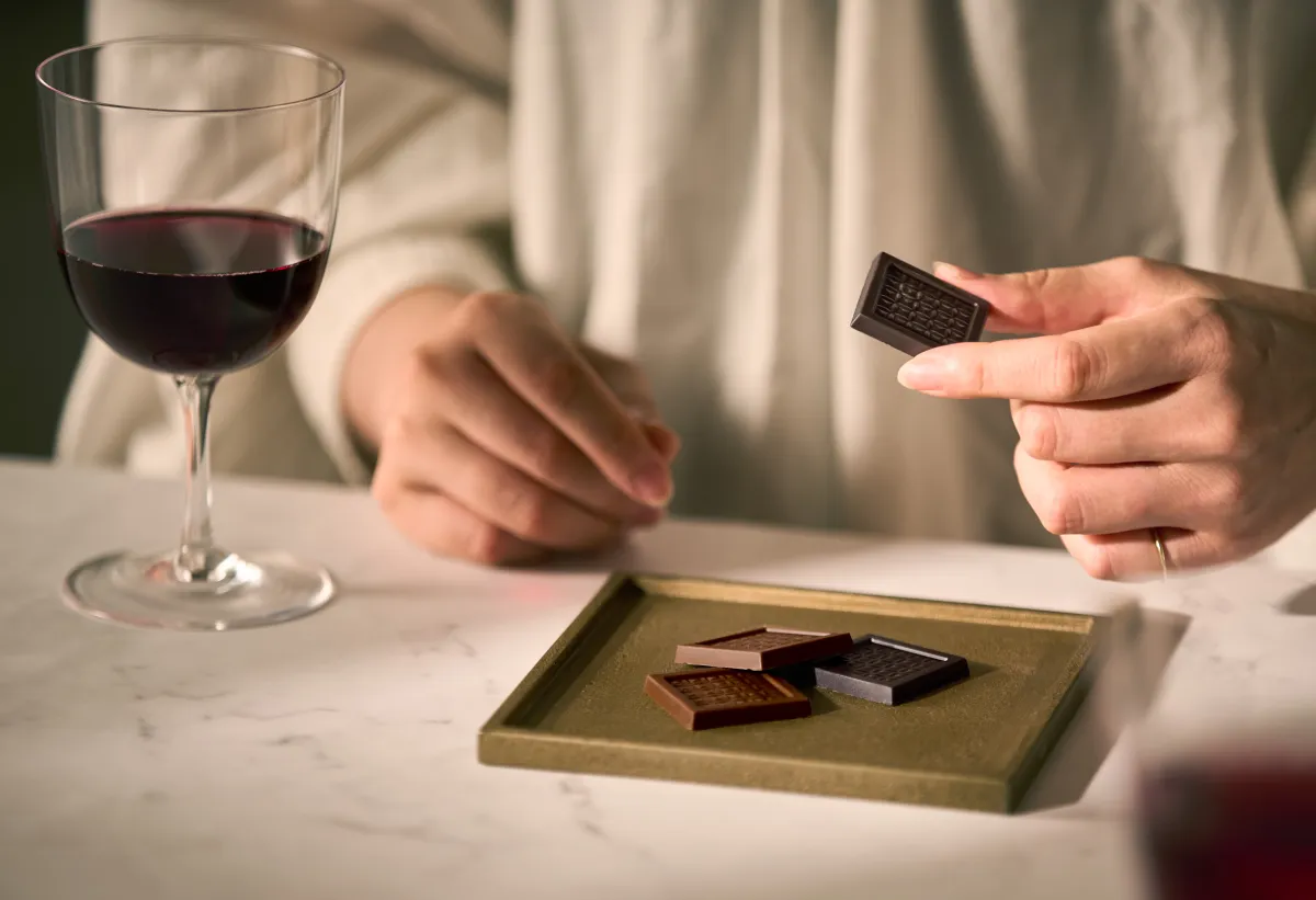 モカブルが提案する「コーヒーを食べる」新たな体験では、コーヒー豆を全て使用し、独自の製法によって作られたモカブルが提供されます。外見はチョコレートのようですが、実際に口にするとコーヒーの豊かで華やかな香りが広がり、飲むことでは決して体験できない味わいに驚くことでしょう。実際、コーヒー豆の産地や品種ごとにその特性があり、焙煎や精選のプロセスによってアロマが変化するため、ワインとの相性も抜群です。
