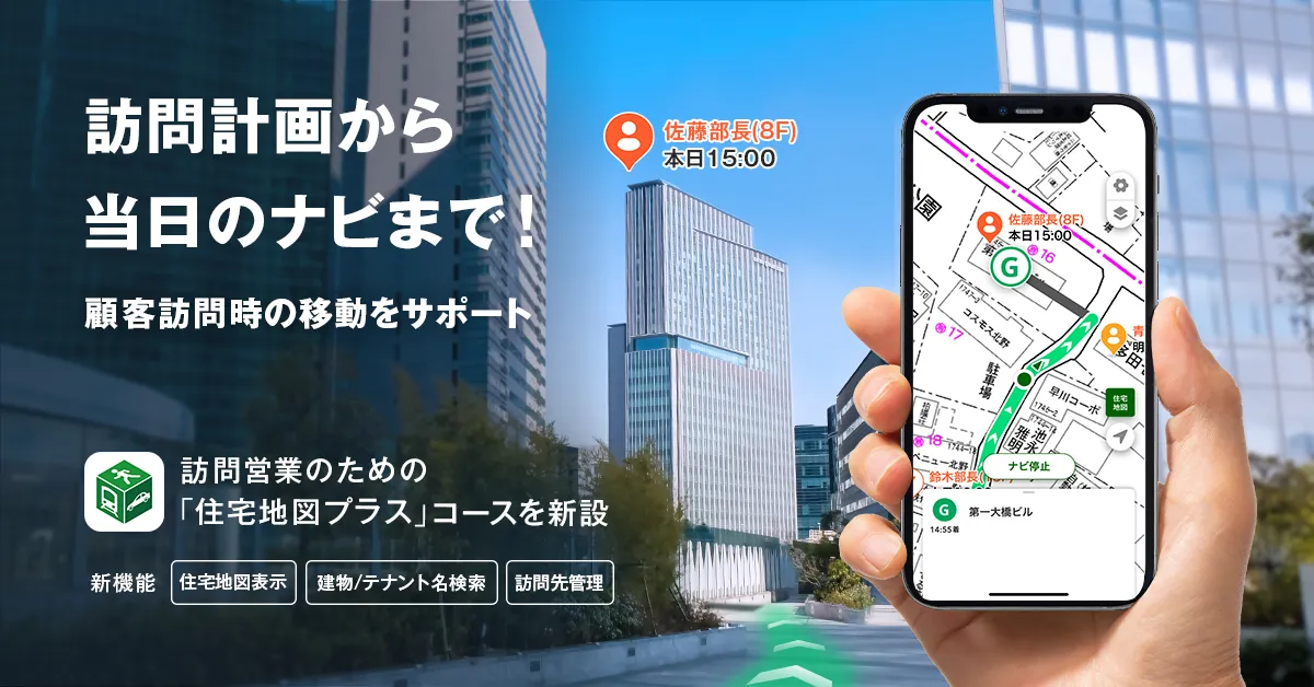 「住宅地図プラス」コースは、ビジネスシーンに特化した新たなナビゲーション機能を提供し、日常の業務効率を向上させる期待が寄せられています。移動前の訪問先の管理から経路検索、移動中のナビゲーション、訪問後の記録まで、すべてを一つのアプリで完結できるこのサービスは、多くのビジネスパーソンにとって、不可欠なツールとなるでしょう。ぜひこの機会にその利便性を体感してみてください。