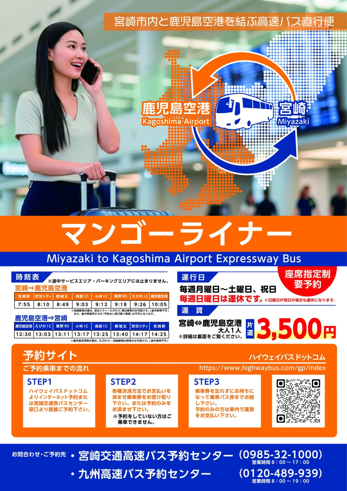また、鹿児島空港から宮崎行きの便もあり、12時30分に出発し、14時25分に宮崎駅へ到着します。途中のえびのICでの降車のみが可能です。