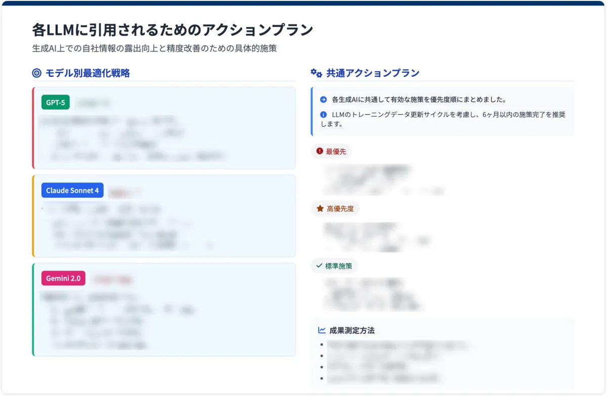 自社メディアでのコンテンツ制作や、他社メディアでのPRなど、具体的なアクションプランを提案することで、実践的な施策を講じることができます。
