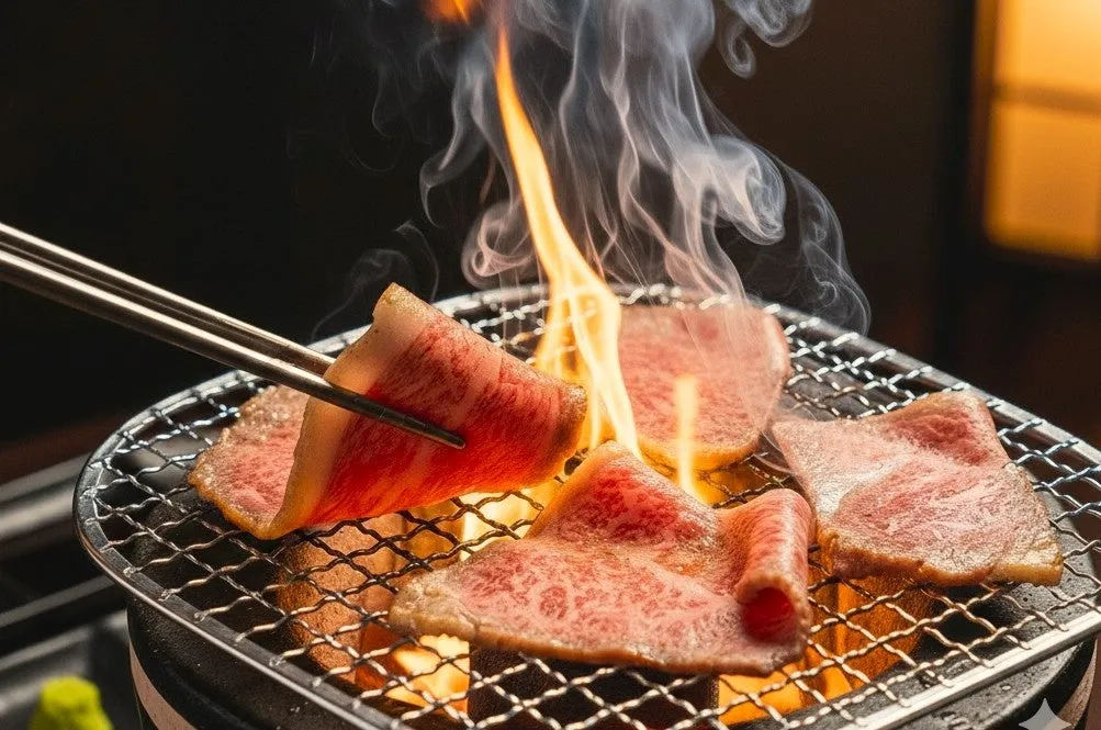 もうひとつは、炭火を使った焼肉の自慢のスタイルです。炭火から放たれる遠赤外線が、肉の内部までしっかりと熱を通し、外は香ばしく、中はジューシーな焼き上がりが楽しめます。