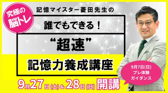 TAC株式会社(東京都千代田区、代表取締役:多田 敏男)は、2025年9月27日(土)と28日(日)の2日間にわたり、記憶力を短期間で向上させる「アクティブ・ブレイン・セミナー」を開催します。このセミナーは、脳科学を取り入れた記憶法を学ぶことができる画期的な講座です。
