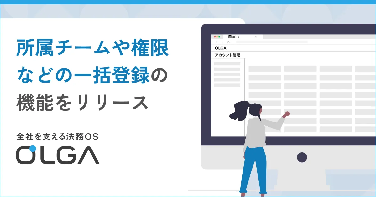 「OLGA」は、企業内の法務部門と事業部門が連携しながら法律業務を実行するために設計された、AIを搭載した高度な統合型プロダクトです。法務案件管理や契約管理、AI法務アシスタントなど、多彩な機能を提供します。最近のアップデートによって、ユーザーはCSVファイルを利用して一度に複数のアカウント情報を登録したり更新したりできるようになりました。