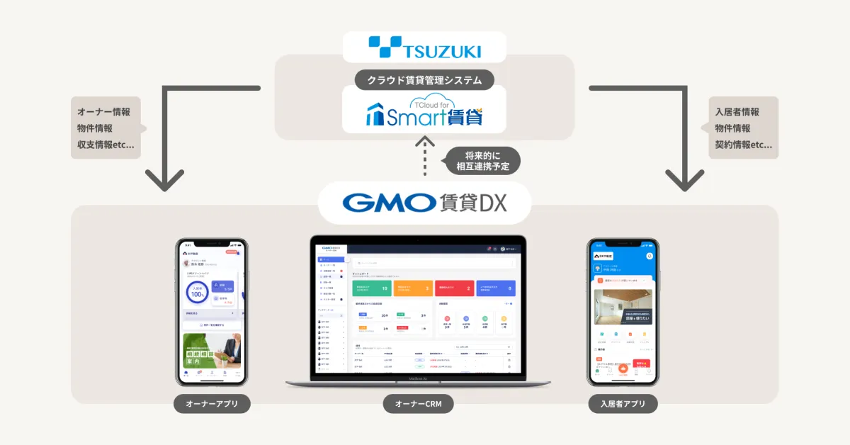 GMO ReTechは「賃貸運営を楽にする」というミッションのもと、不動産管理会社向けのDXプラットフォーム「GMO賃貸DX」を展開しています。その中で「GMO賃貸DX オーナーアプリ」や「GMO賃貸DX 入居者アプリ」、「GMO賃貸DX オーナーCRM」などを人気を集めており、今回の連携もその実績を基にしたものです。