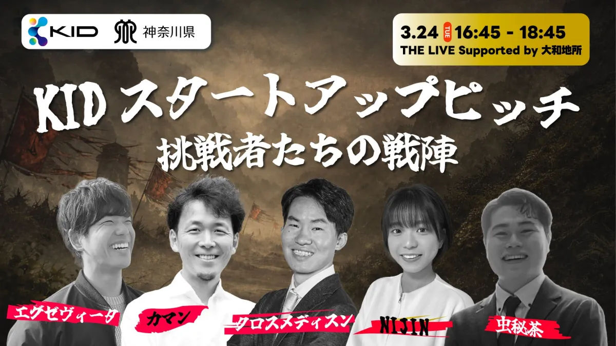 この日のメインイベントは、起業家プレゼンコンテスト「KID Startup Pitch 2026 -挑戦者たちの戦陣-」。このコンテストには、厳選された5名の起業家が参加し、社会課題の解決に向けたビジネスプランを発表します。