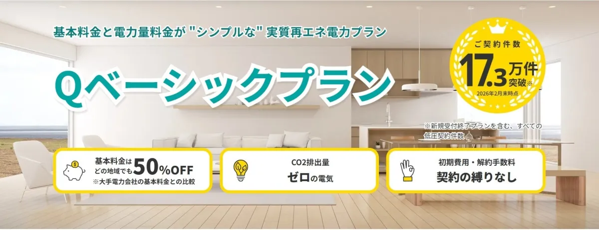Q.ENESTでんき株式会社(以下、当社)は、2026年4月1日より新しい電力プラン「Qベーシックプラン」を提供開始します。このプランは、従来の複雑な料金体系を見直し、シンプルで分かりやすい料金設定を導入。さらに、基本料金は地域の大手電力会社と比較して50%OFFに設定するとともに、実質再生可能エネルギー100%を実現することで、家計の負担を軽減し、持続可能な社会に貢献することを目指します。