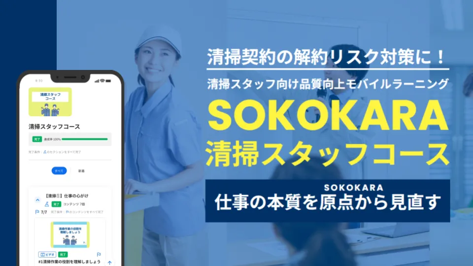 近年、ビルメンテナンスや清掃業界では、業務の規模や役割が多様化し、教育や人材育成が重要視されるようになっています。DC株式会社が2025年3月に正式リリースした「SOKOKARA 清掃スタッフコース」は、そんな現状を受けた新しい教育プラットフォームです。これにより、清掃スタッフのリスク管理やモラル教育が、スマートフォンを通じて簡単に実施できるようになります。