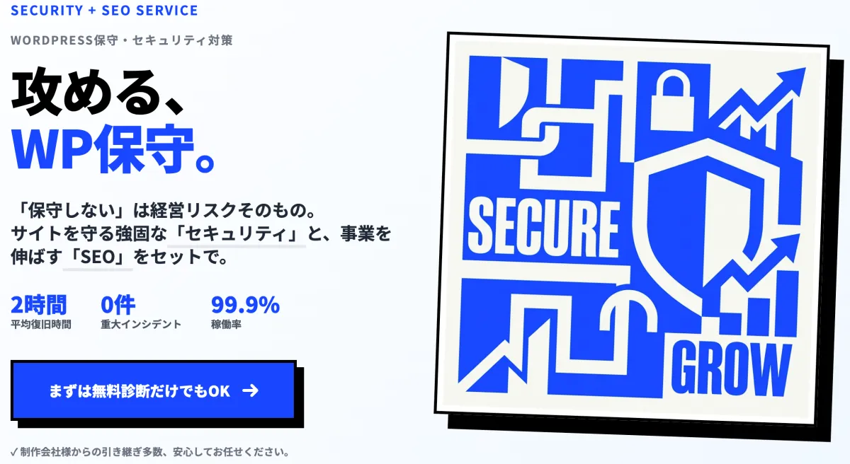 「自社サイトのセキュリティ状況が分からない」「制作会社との連絡が途切れてしまった」といったお悩みのある企業様は、この機会を逃さずにぜひご相談ください。
