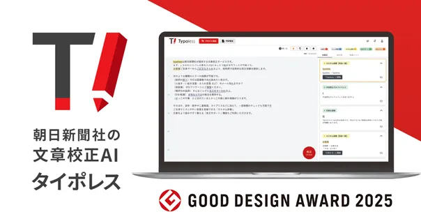 あらゆる情報が瞬時に流れる現代社会において、文章の正確性や表現の適切さはますます重要性を増しています。このようなニーズに応え、朝日新聞社が開発した文章校正AI『Typoless』が2025年度のグッドデザイン賞を受賞したことが発表されました。