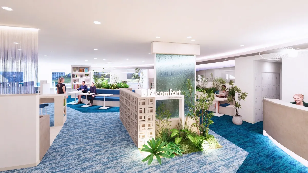 「BIZcomfort月島」は、機能別にエリアを分けた設計を採用しています。集中力が必要なワークブースはもちろん、隅田川を見ながらリラックスできるカフェブースも完備。利用者は、自分のワークスタイルに合わせて最適な場所を選択し、最大限のパフォーマンスを引き出すことができます。