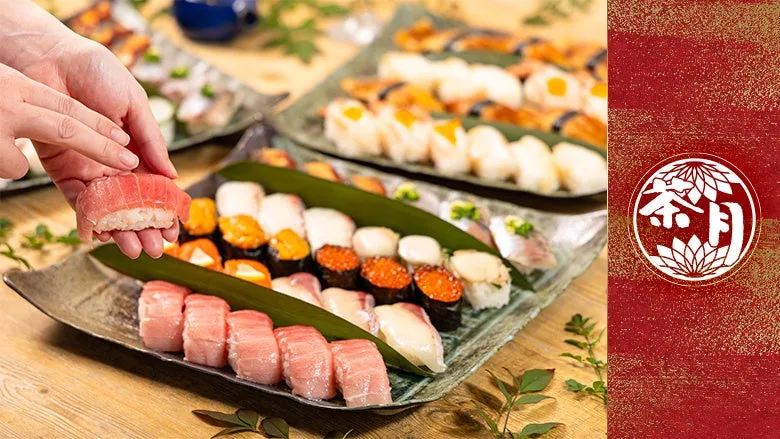 1950年に創業した「茶月」は、京都・河原町四条で長年にわたり地元の人々に愛され続けています。京風ちらし寿司や江戸前にぎりなど、見た目にも美しく、おいしい料理を提供しています。おもてなしの心を大切にし、上質な素材を使用した本格的な寿司を中心に、和洋折衷のオードブルで、皆さんの会食をより華やかに演出することが「茶月」の使命です。