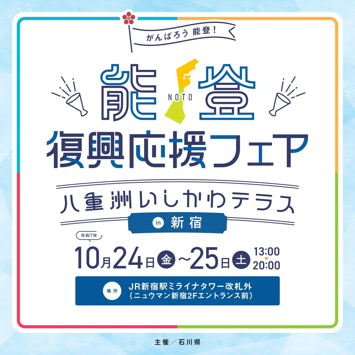 この秋、能登半島地震の復興を応援するための「能登復興応援フェア」が新宿駅近くの八重洲いしかわテラスにて行われます。昨年度の取組を引き継ぎ、首都圏で石川県の魅力を発信するこのイベントは、県産品の試食や販売、復興のための情報発信を通じて、地域振興にも繋がる大切な機会です。