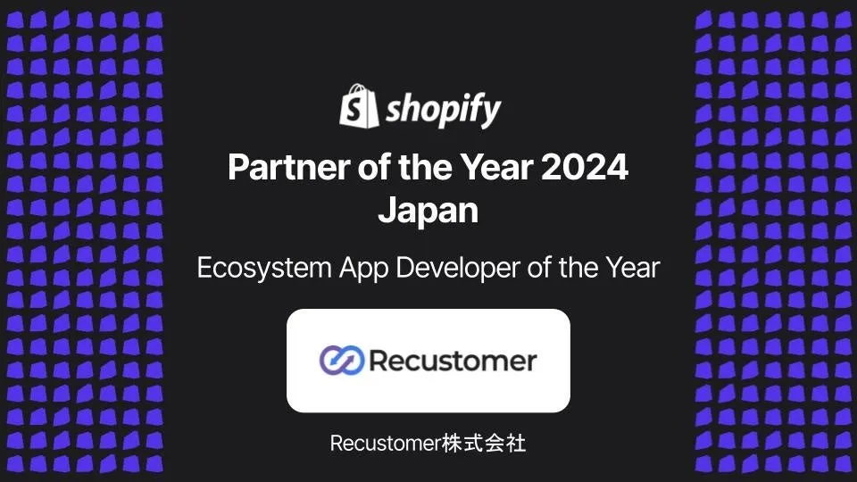 Recustomer株式会社が、2024年度のShopify Partner of the Year - Japanにおいて「Ecosystem App Developer of the Year」を受賞しました。この栄誉は、同社が開発した購入後体験プラットフォーム「Recustomer」が、特に日本国内の多くのマーチャントにとって価値ある機能を提供し、Shopifyエコシステムの拡大に貢献した結果といえるでしょう。