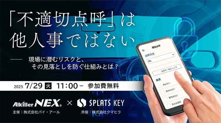 株式会社パイ・アールと株式会社クマヒラは、2025年7月29日(火)11時から、オンラインウェビナー「不適切点呼は他人事ではない──現場に潜むリスクと、その見落としを防ぐ仕組みとは?」を開催します。このウェビナーでは、企業における点呼の重要性を再確認し、実務に基づいたリスク対策を考えます。