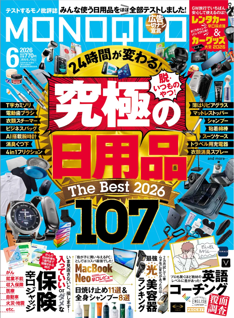 生活をより快適に、より効率的にするために必要なアイテムは日々更新されています。『MONOQLO』の6月号では、2026年に向けた「究極の日用品The Best 2026」と題し、毎日の生活をガラッと変える商品をご紹介しています。朝・昼・夜のあらゆるシーンを想定した徹底調査を経て、おすすめアイテムを厳選しています。