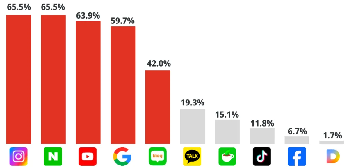NAVERが最も利用されていることが明らかになりました。また、商品情報を認知するために最も多く利用されるメディアは