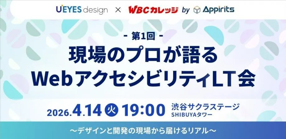 デジタル社会が進展する中、ますます高まるアクセシビリティへの要求。そんな時代背景を受け、「現場のプロが語るWebアクセシビリティLT会」が2026年4月14日に開催されます。本イベントは、U'eyes Designとアピリッツの共催で行われ、UXデザインの視点から現場の最前線で活躍するプロフェッショナルたちが集結します。