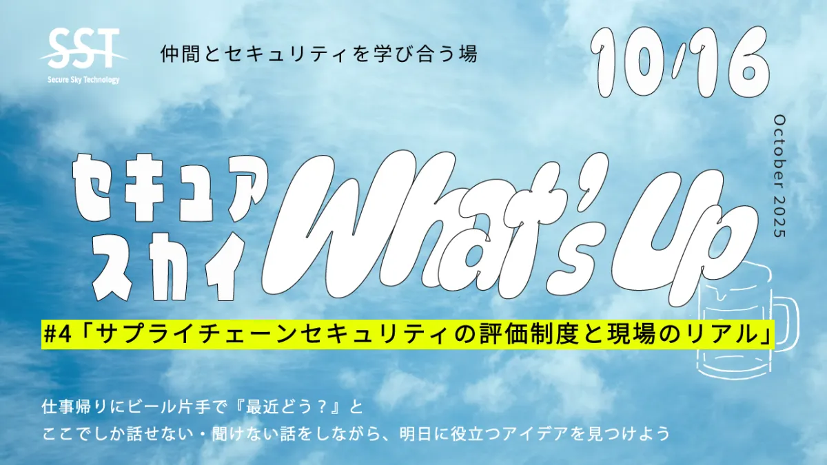 インターネットの安全性向上を目指す株式会社セキュアスカイ・テクノロジーは、2025年10月16日(木)に「セキュアスカイ What's Up」第4回目のイベントを開催することを発表しました。このイベントは、セキュリティ担当者向けのクローズドなメンバー限定のコミュニティイベントであり、参加者 registered registrationが現在受け付けています。