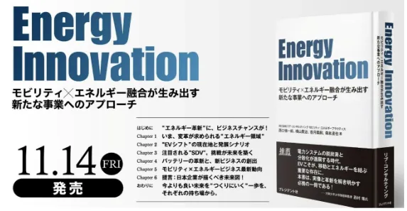 2025年11月14日、全国書店にて『Energy Innovation』が発売されます。著者は、モビリティ領域に特化した経営コンサルティングを行う株式会社リブ・コンサルティング。特に、GXやEV領域での事業開発に取り組んできた経験を基に、モビリティとエネルギーの融合による新たな事業機会を模索した本書は、業界人必見の一冊となっています。