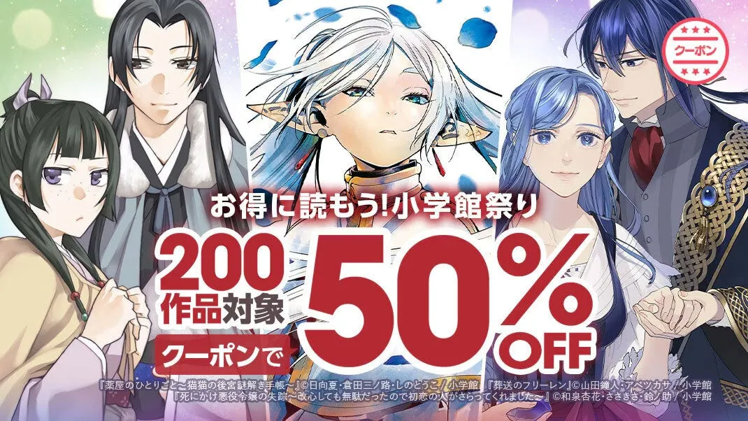 2025年1月20日から23日の4日間、電子書籍サービス「ebookjapan」で「お得に読もう!小学館祭り」が開催されます。このイベントでは、大人気のマンガ200作品がなんと50%OFFで購入可能です!特に、現在TVアニメが放送中の『薬屋のひとりごと~猫猫の後宮謎解き手帳~』をはじめ、多数の魅力あふれる小学館の作品が対象となっており、ファンには見逃せないお得な機会となっています。