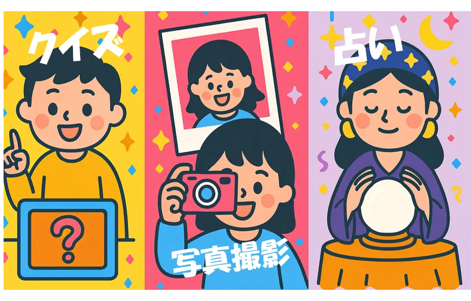 ゲストが楽しめる占いの選択肢も自由に設定できます。例えば、飲食店ならその日のおすすめメニュー、昆虫イベントであれば特定の虫の種類に関する占いなどが可能です。結果の表現もカスタマイズすることができ、運気アップのアドバイスなども気軽にもらえます。