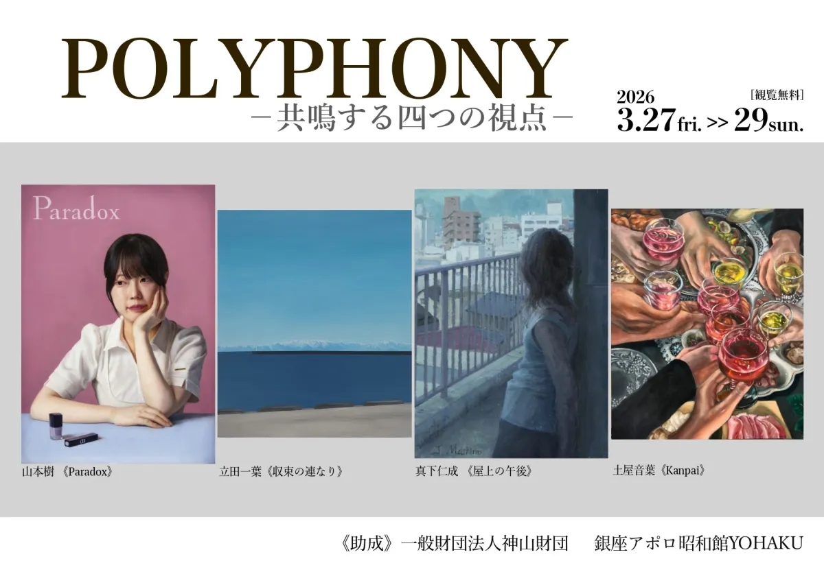 2026年3月27日から29日まで、東京都中央区の昭和レトロなギャラリー、銀座アポロ昭和館YOHAKUにて、グループ展「POLYPHONY―共鳴する四つの視点」が開催されます。本展の特徴は、現在注目を集めている若手作家4名が参加し、それぞれの視点や表現を通じて独自のアートを展開することです。