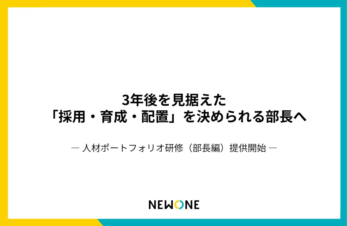 株式会社NEWONEでは、この問題を解決するために、部長層に特化した1日完結型の『人材ポートフォリオ研修(部長編)』を2025年12月から提供開始します。この研修は、部長が自部門の人材戦略を意識的に考え、実行に移す力を育てることを目的としています。参加者は自部門の人材構成を把握し、未来の事業戦略を見据えて理想的な人材のポートフォリオを描くことに取り組みます。