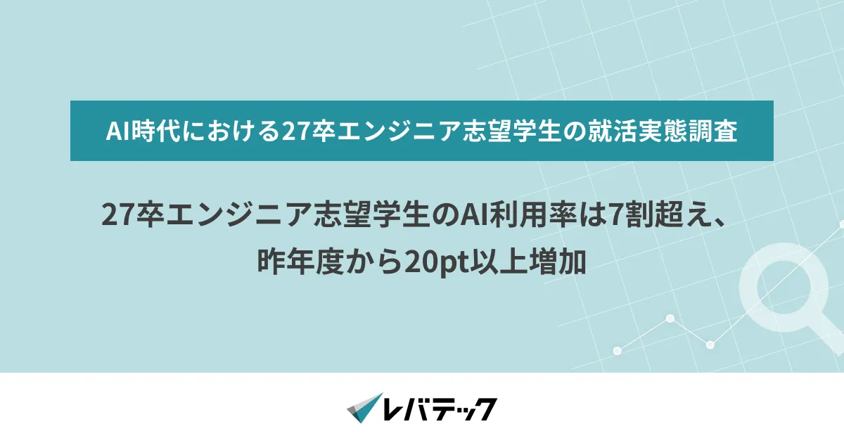 このたび、レバテック株式会社が実施した調査によって、2027年卒業予定のエンジニア志望学生のAI(人工知能)利用状況について明らかになりました。調査対象は144名で、主にエンジニア職を希望する大学生や大学院生です。