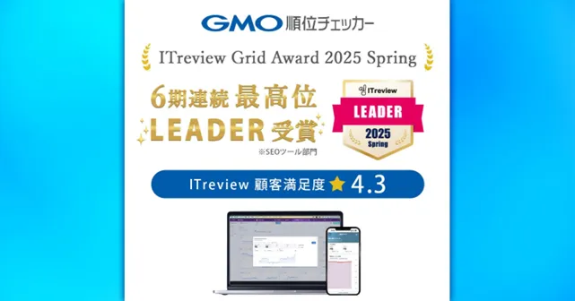 GMOインターネットが展開する「GMO順位チェッカー」は、ウェブマーケティングの必需品として高い評価を受けています。このツールは、指定したキーワードの検索順位を毎日自動的に収集し、PCやスマートフォンの両方で視覚的にその推移を確認できる便利なプラットフォームです。最近、これは「ITreview Grid Award 2025 Spring」でSEOツール部門の最高位「Leader」を受賞し、特に6期連続で著しい成果を収めていることが注目されています。