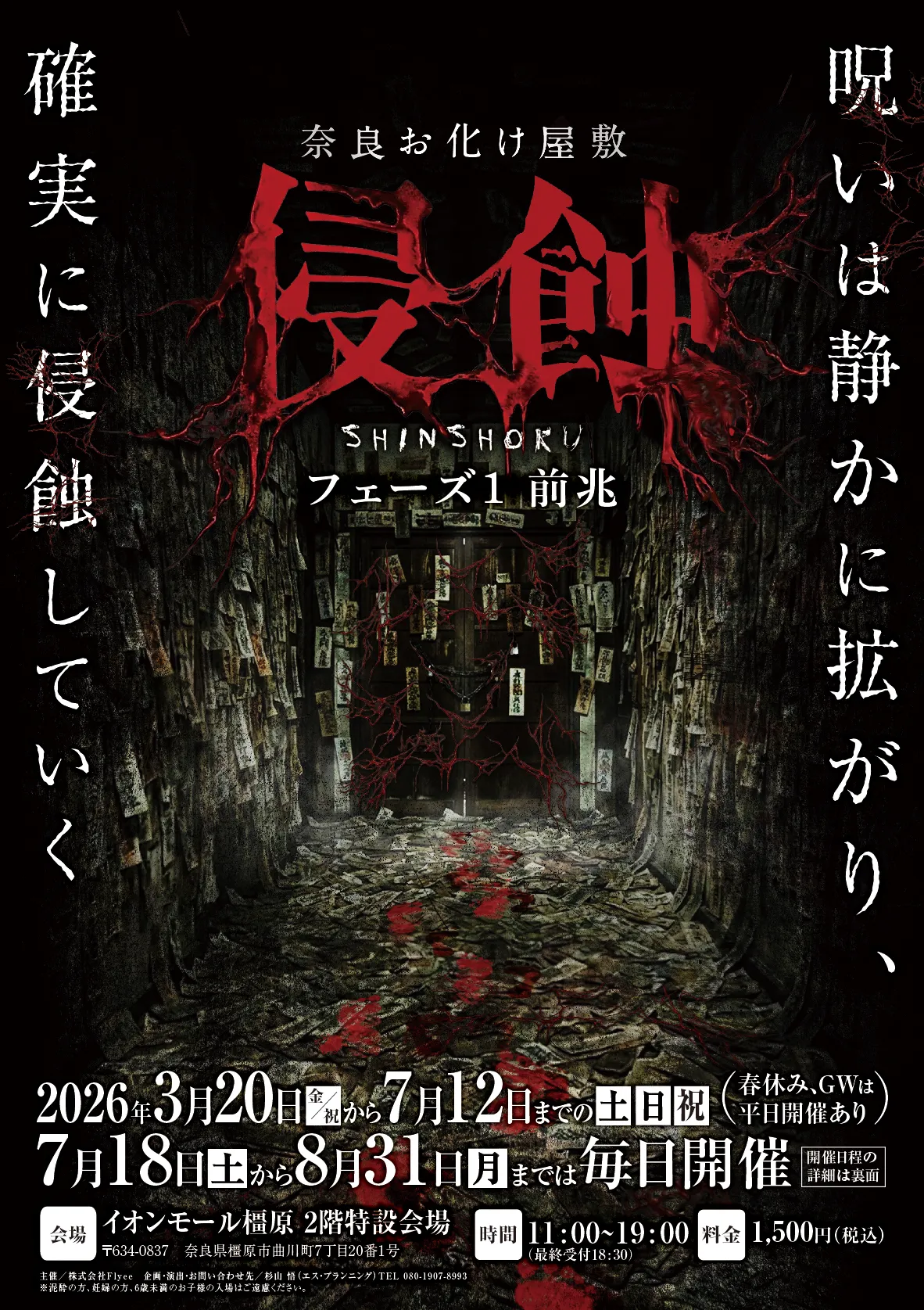 2026年3月20日から8月31日まで、奈良県のイオンモール橿原で本格的なホラー体験「浸蝕」が開催されます。このイベントは、広島のエス・プランニングによるもので、二つの異なる開催内容があります。最初の期間は、3月20日から7月12日まで、土日祝日限定。春休みやGW期間中は平日にもオープンします。7月18日から8月31日までは毎日開催され、より多くの人がこの恐怖の世界に足を踏み入れることができます。