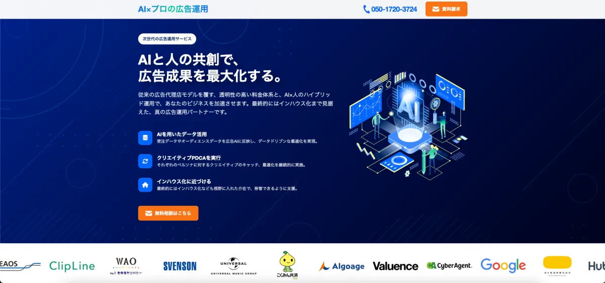 ただ単にAIを駆使するだけでなく、経験豊富なマーケティングのプロフェッショナルによる戦略設計やクリエイティブの改善も行います。AIと人間が共創することで、より高い成果を実現することを目指しています。