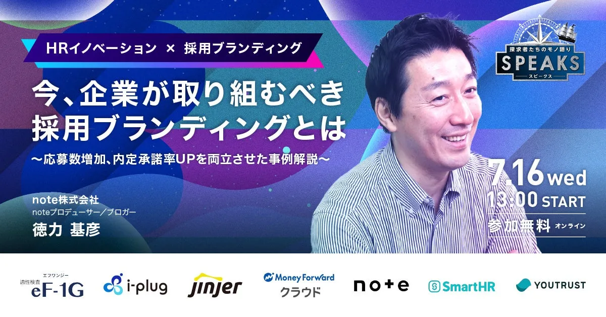 2025年7月16日(水)、株式会社ニューピークスが主催する『SPEAKS HRリーダーズサミット』がオンラインで開催されます。本イベントには、タレントマネジメントや組織開発に関する第一線の専門家が登壇し、現代の採用ブランディングをテーマに多彩なセッションが用意されています。特にnote株式会社の徳力基彦氏が行うセッションでは、応募者数と内定承諾率の両方を向上させる具体的な事例を交えながら、効果的な採用ブランディング手法を紹介します。