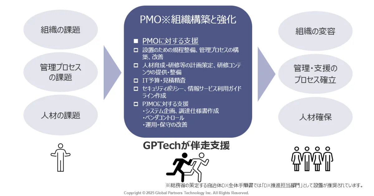 株式会社グローバル・パートナーズ・テクノロジー(GPTech)は、自治体のデジタル・トランスフォーメーション(DX)を支援するサービスを始めました。これは、自治体のIT体制を強化するための「自治体向けPMO支援サービス」です。