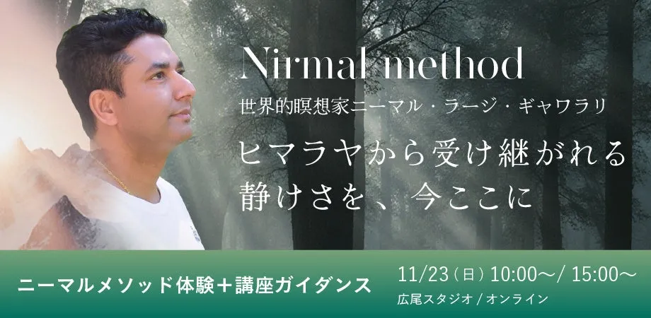 ニーマル・ラージ・ギャワリ氏による特別な瞑想講座が開催されます。この講座は、古くから伝わるヒマラヤ瞑想の叡智を継承した、人生を変える可能性を秘めた貴重な体験です。