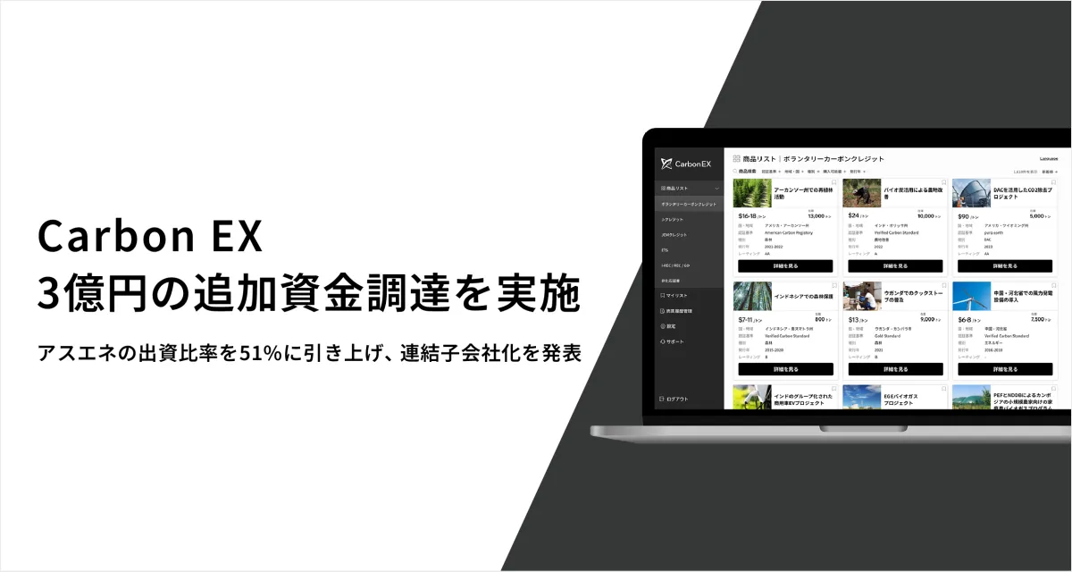 Carbon EXが3億円の資金調達を実施し、アスエネを連結子会社化