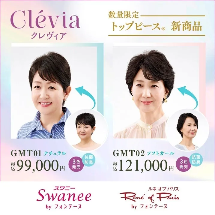 株式会社アデランスは、GMSに新たに展開するブランド「Clévia(クレヴィア)」から、手軽に使える高品質な部分ウィッグ、『GMT01』と『GMT02』を2026年4月10日(金)に発売します。これまでのウィッグに不安を感じていた方々にも安心してご使用いただけるよう、機能性とデザイン性を兼ね備えた商品設計が施されています。