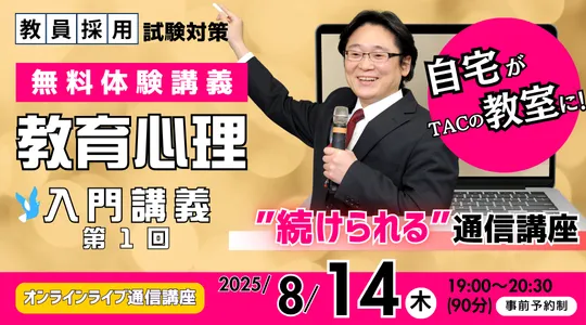 2025年8月14日(木)、TAC教育講座が提供する「教育心理 入門講義 第1回」がオンラインで開催されます。この講義は教育心理の全体像を把握し、学問の基本的な構造を理解するための絶好の機会です。カメラやマイクなしで参加できるので、気軽に受講を開始できます。