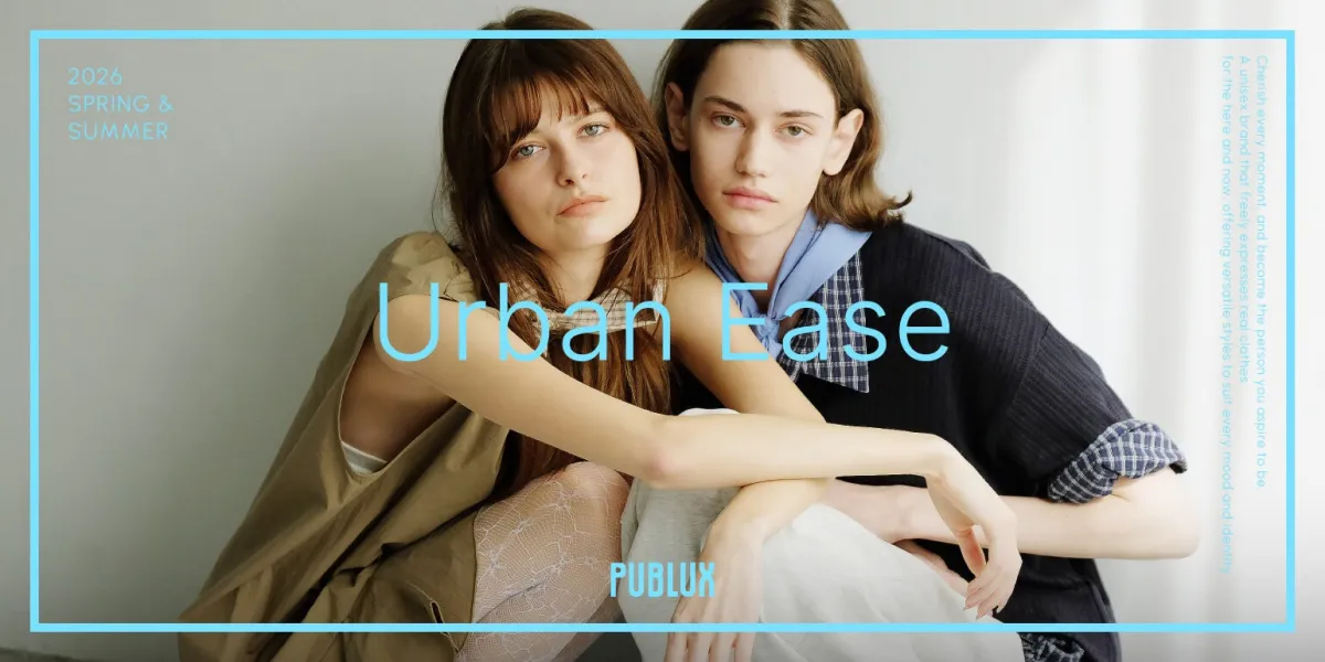 ユニセックスブランド【PUBLUX(パブリュクス)】が2026年の春夏に向けた新コレクション「Urban Ease」を発表しました。このコレクションは、都会的な日常にフィットするスタイルをコンセプトにしています。忙しい街の中で自分らしさを感じられるよう、シンプルでありながら洗練されたデザインが特徴です。