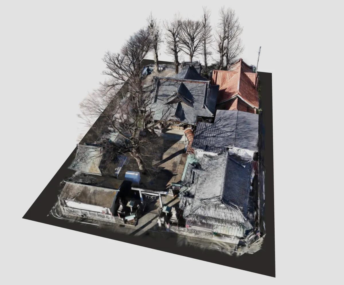 最近、群馬県伊勢崎市にある伊勢崎神社での3Dスキャン実証実験を行いました。この神社は市街地に位置し、周囲の建物や植生が影響する難しい環境でのデータ収集を行いました。撮影時には直射日光による影や、ノイズが多い環境が問題となりましたが、Gaussian Splattingを用いてデータを断片的に生成し、統合するツールを開発することで解決しました。これにより、より正確で多面的なデータが得られるようになりました。