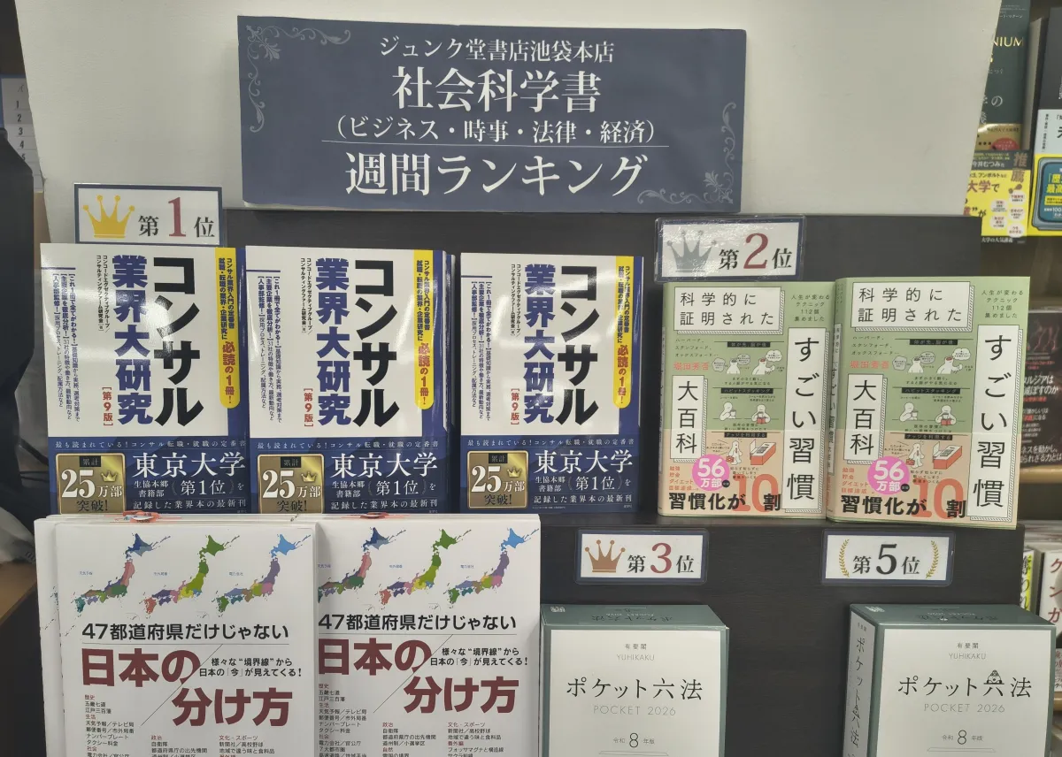 2026年4月20日、ジュンク堂書店池袋本店の週間ランキングにおいて、著者・渡辺秀和の『コンサル業界大研究 第9版』が社会科学書部門で堂々の第1位を獲得しました。この快挙は、多くの学生や社会人にとって注目すべきニュースとなります。